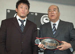 日本&東洋フライ級チャンピオン内藤大助(宮田)がJBCを通じて東洋タイトルの返上を申し出た。1月20日付。内藤は3月18日、名古屋で長縄正春(岐阜ヨコゼキ)を相手に東洋王座の防衛戦を行うと発表されていたが、OPBFから指名試合も迫られている上に、負傷したマブタの再手術のために今回のカーニバル出場を見合わせており、2つのタイトルを保持して防衛戦をしていくのは困難と陣営が判断したもの。今後は日本王座の防衛戦に専念するという。 また日本ウェルター級チャンピオン大曲輝斉(ヨネクラ)も1月24日付でベルトを返上した。返上の理由は、眼筋マヒの治療により指名試合期限を守ることが不可能なため。大曲の返上により、チャンピオンカーニバル、ウェルター級は王座決定戦になる。21日に新井恵一を下した元王者・湯場忠志(都城レオS=1位)の出場は確定しているが、対戦相手は未定。 大曲の眼筋マヒは心配だなぁ。眼の負傷は長引くことが多いし・・・12連続KOで決めた1月3日のガルシア戦はホントに強かった。しっかりと治療して、また豪快な試合を見さしてほしい。 フライ級日本最強の内藤には、同じ階級の亀田と試合してほしい。日本人と戦ったことがなく、不可解なマッチメイクが多い亀田の強さが、内藤との試合でハッキリするだろう。 kamipro、GONG格闘技、格闘技通信の最新号が一斉に発売されました。皆さんはご覧になりましたか?前号、秋山不正問題の記事で物議をかもした“格闘技通信”は立ち読みで十分ですが・・・(怒)各誌とも、大晦日の秋山vs桜庭戦について詳しく検証しています。“格闘技通信”は、最新号で言い訳がましい記事を掲載していますが、格闘技雑誌ではなくK-1の広報誌ぐらいに考えたほうがいいでしょう。“kamipro”“GONG格闘技”は大変読み応えありました。特に“GONG格闘技”はかなりのページを割いて秋山不正問題の記事を掲載していました。和田良覚レフェリーは記者とのインタビューの中で、ストップ直前にボコボコに殴られながら桜庭が「和田さんスベるよ」と何度も叫んでいたことを聞き、涙を流したそうです。秋山がローションを使用したのが試合15分前で、まるごとビン1本という信じられない量を使っていたという衝撃の内容も明かされました。選手のインタビューも大量に掲載しているのでファン必見です。 長谷川“壊し屋”へモデルチェンジ ボクシングの「2006年度・年間優秀選手表彰式」が23日、東京都内のホテルで行われ、2年連続で最優秀選手賞(MVP)と年間最高試合賞を受賞したWBC世界バンタム級王者の長谷川穂積(26)=千里馬神戸、殊勲賞のWBA世界Sフライ級王者の名城信男(25)=六島=らプロ、アマの表彰選手が出席。WBA世界Lフライ級王座返上を表明した敢闘賞の亀田興毅(20)=協栄=は式を欠席し、代理受賞となった。 2年連続のダブル受賞に長谷川は日本ボクシング界の“顔”として「少しでもボクシング界を盛り上げるようにいい練習をして頑張りたい」と貫録を見せた。前WBC世界Sフライ級王者・徳山昌守(金沢)とのビッグマッチを封印して年内の米国進出を目指す。「海外ではバンタムとS・バンタム級でチャンスを待ちたい」と2階級での海外進出を視野に入れていることを明かした。 また「自己満足のボクシングは卒業」とスタイル変更も宣言。「海外仕様のボクシングに変えたい。自分を知らない人が見て『面白い』とまた呼んでもらうには倒すしかない」。年間最高試合に輝いたV2戦のウィラポン戦(昨年3月25日)を9回KOで制したように、好戦的なスタイルを身上としているが、自分ではまだ物足りない。 理想に掲げたのは、21連続KO(無敗)で初回KOが19度のWBA世界S・フェザー級王者のエドゥイン・バレロ(ベネズエラ)だ。「見ていて単純におもしろい。一瞬のスキを突いて倒したい」と日本の“壊し屋”として海の向こうで知名度を上げるつもりだ。 指導する山下正人トレーナーも「最近は自然とパンチ力がついてきているし、カウンターのタイミングは絶妙だ」と太鼓判。次戦は国内で4月下旬から5月上旬の予定(相手未定)で、野望へ向けて「まずKOで勝ちたい」と王者。2007年は全戦KO勝利で、3年連続MVPを目指す。 長谷川選手、2年連続MVP&年間最高試合受賞おめでとう。ウィラポンとの防衛戦での鮮烈なKO勝利には鳥肌がたった。スピードがありアメリカ人受けするボクシングをするので、“ボクシングの本場”アメリカで人気がでると思う。ぜひ、長期安定政権を築いてほしい。 名城は、カスティーリョとの再戦、1位のムニョスとの指名試合とかなりキツイ戦いが続く。好きなボクサーなので頑張ってほしい。 石田に続いて…川尻達也が世界ウェルター級王座を返上 1月23日(火)東京・サステインにて記者会見が行われ、第8代修斗世界ウェルター級王者・川尻達也(T-BLOOD)のタイトル返上が発表された。 川尻は昨年大晦日に参戦したPRIDE男祭りのギルバート・メレンデス(アメリカ)戦で、左手の親指を負傷。試合直後はつき指程度の軽い怪我だと思っていたものが、数